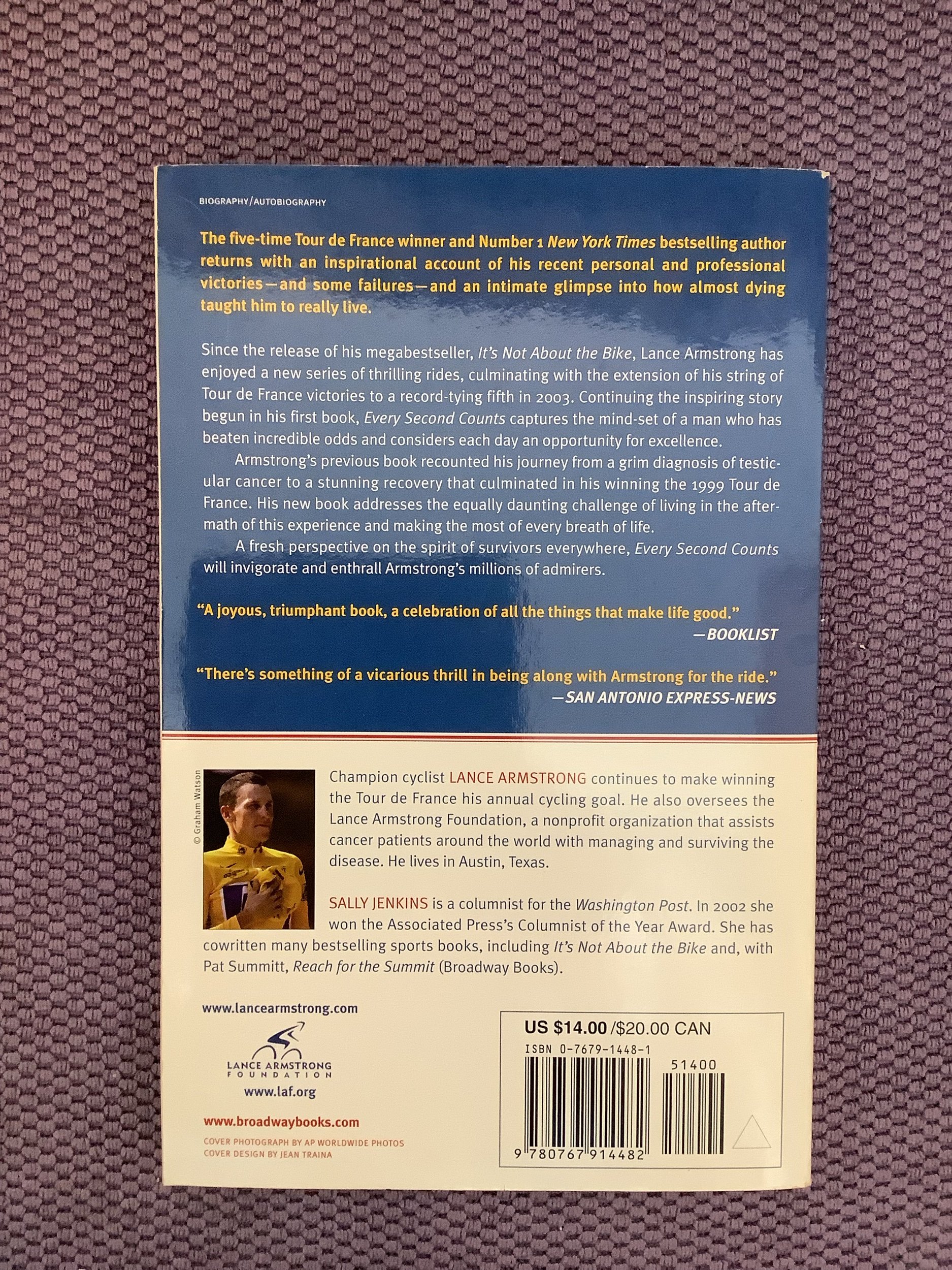 SecondHand Books › Every Second Counts Every Second Counts $10.70 Every Second CountsBy Lance Armstrong with Sally JenkinsEUCPaperbackRef HH Every Second CountsBy Lance Armstrong with Sally JenkinsEUCPaperbackRef HH Add To Cart Added!