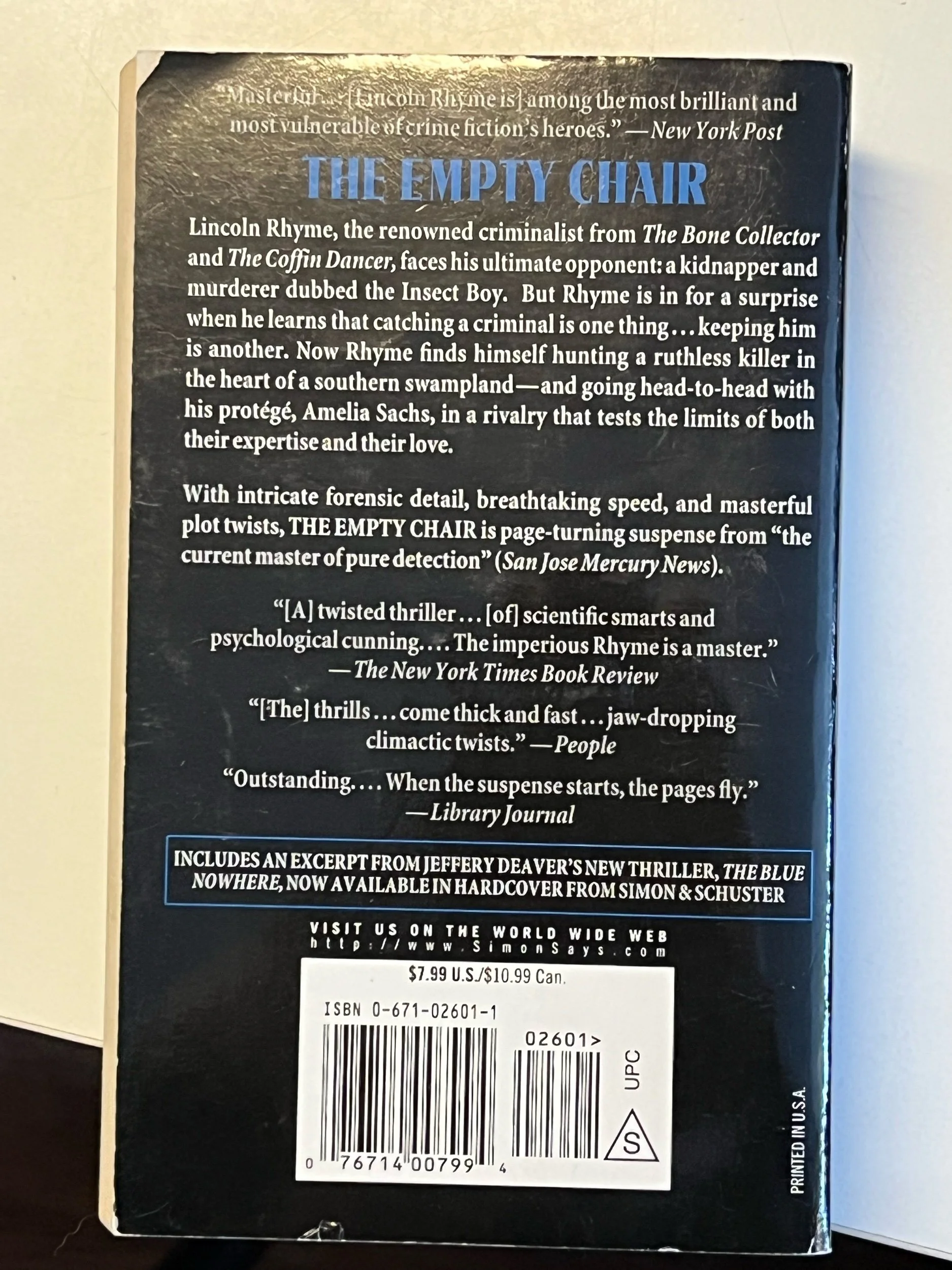 SecondHand Books › The Empty Chair The Empty Chair $5.89 The Empty Chair by Jeffery DeaverStandard paperback GUCRef A The Empty Chair by Jeffery DeaverStandard paperback GUCRef A Add To Cart Added!